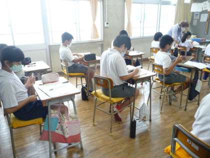 8月28日 5年2組 授業風景 公開日 2020/08/28 更新日 2020/08/28 学校生活 算数の授業です。全体で問題を解いて、やり方を確認したら、「自分タイム」で自分のペースで学習を深めていきます。 いいね(0) 5年生