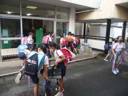 6時間目が終わり、3年生以上の子供たちも下校です。