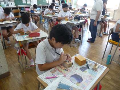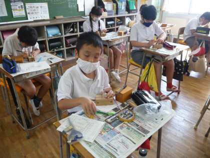 印鑑などを日頃作られている、プロの専門家をお招きして、5年2組で篆刻講座を実施しました。
