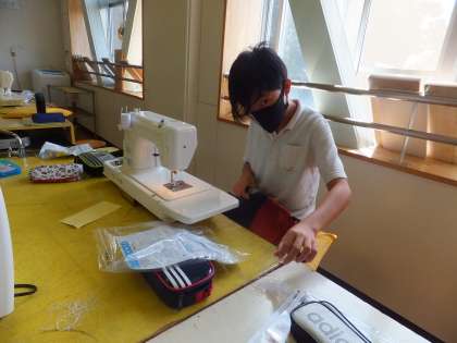 どの子も、暑さに負けずに集中していました。ミシンの使い方も上手になっています。