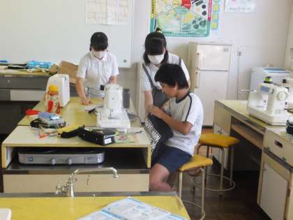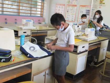 6年生は、家庭科で、「ナップザック」「トートバッグ」を作っています。