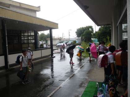 突然の雨で、登校途中に、濡れてしまった子もいたようで気の毒でした。