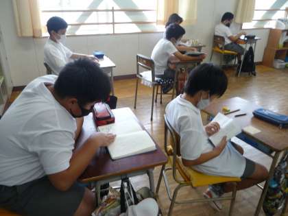 避難訓練を終えたら、静かに読書です。