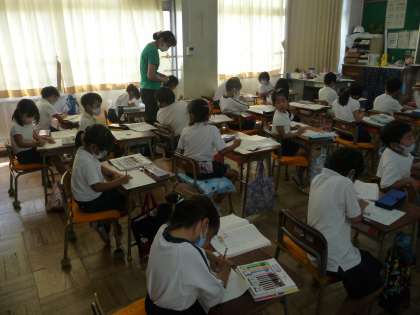 国語の授業です。「おさるがふねをかきました」の単元の学習です。