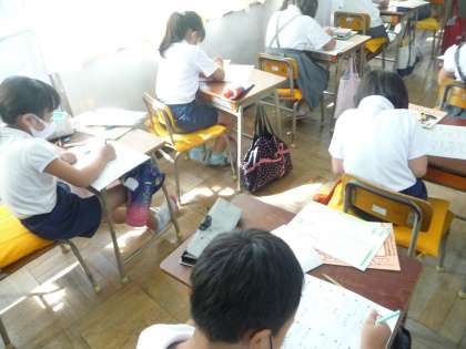 書写の授業です。取捨のワークや、漢字の練習に、黙々と取り組んでいます。