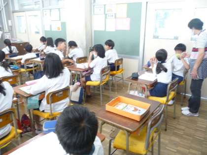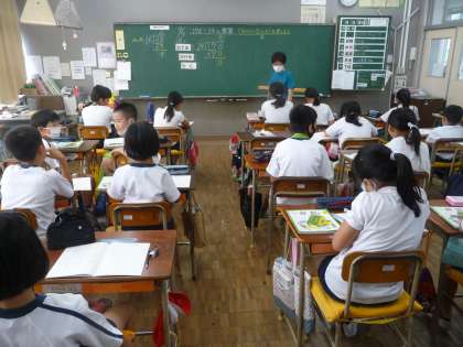 算数の授業です。3けたの数を2けたの数で割る計算の考え方を確認しています。