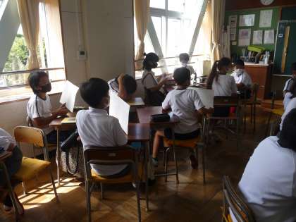 国語の授業です。次回行うパネルディス火ションの準備をしています。
