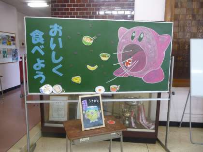 今朝、ホームページに掲載した児童玄関のチョークアートの模様替え。