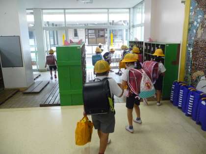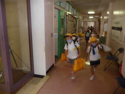 5時間目で終わる3年生以下の子供たちは、下校です。