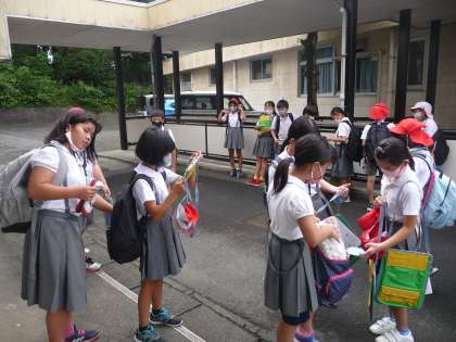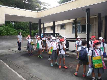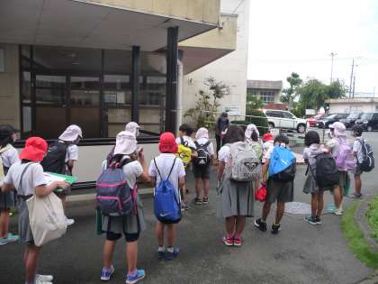 児童玄関を出たら、同行する支援員の先生とあいさつをして出発です。