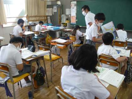 国語の授業です。都道府県名を使ったクイズを作っています。