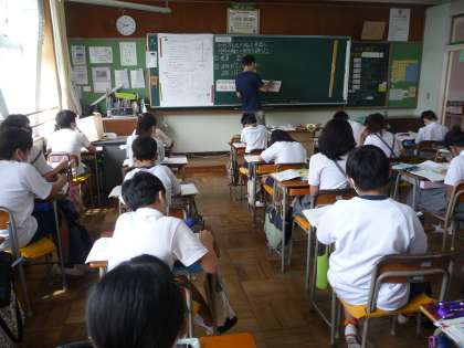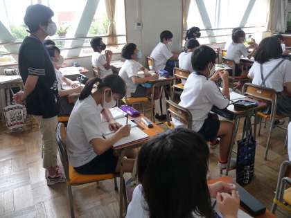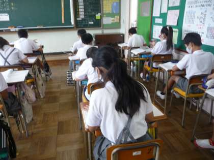 算数の授業です。線対称の学習に入りました。線対称の特徴について、確認しています。