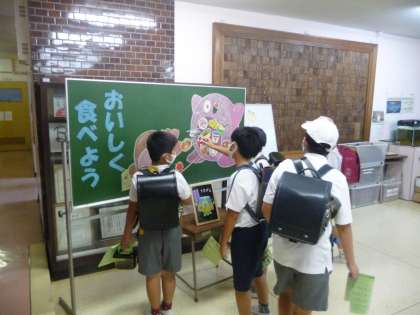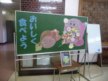 9月15日 チョークアート 公開日 2020/09/15 更新日 2020/09/15 学校生活 登校してきて、今描かれているチョークアートの「カービィ」に何を吸い込ませるか、興味を持った子たちが、いろいろな食材をチョークアートに貼り付けています。 いいね(0)