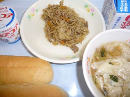 今日は、焼きそばをロールパンにはさんで、焼きそばパンにして食べます。