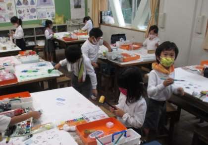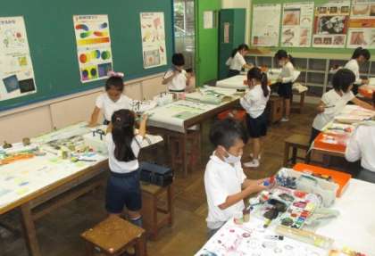 1年 図工 ぺったんころころ 公開日 2020/10/08 更新日 2020/10/08 学校生活 家から持って来たカップや洗濯ばさみ、ペットボトルにも絵の具をつけて・・・ すてきな模様ができました。 いいね(0)