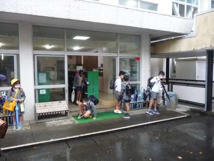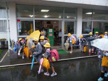 あいにくの雨模様のなかの下校です。気をつけて、帰宅してください。