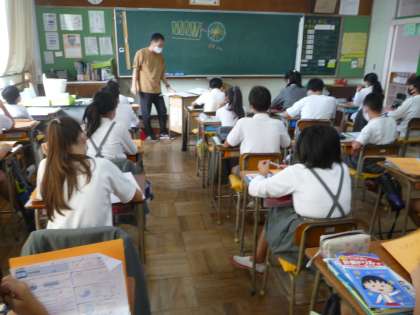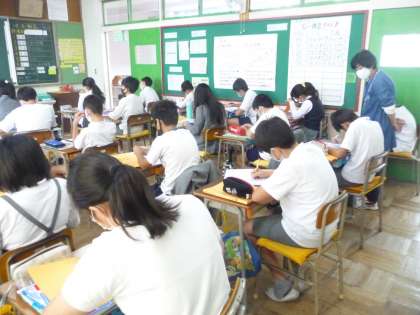 算数の授業です。テストの反省で、学習のポイントを再確認しています。