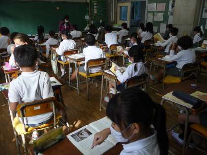 国語の授業です。「ねこのひげ」の説明文を読んで、これからの学習課題を確認しています。