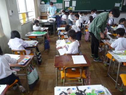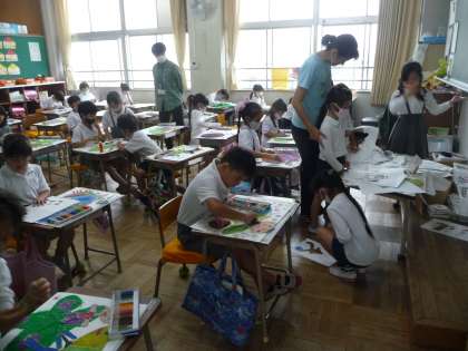 図画工作の授業です。黙々と作業しています。