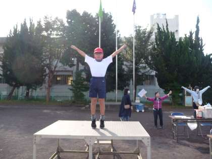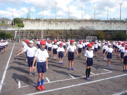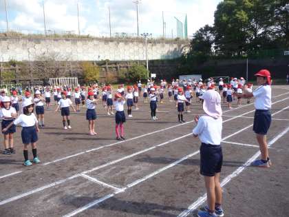 体育委員会の5・6年生が前に立ち、手本を見せてくれました。