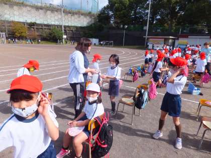 今年度は、コロナ対策のため、プログラムの中間に「お手ふき・消毒タイム」を設けました。