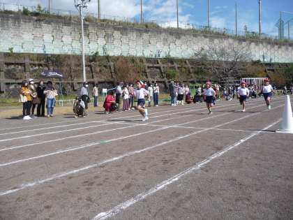 スタートラインに気をつけをして立つ姿は、どの子も輝いていました。全員が、ゴールできました!