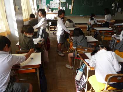 図画工作の授業です。スポーツデーの思い出を、絵で表現しています。