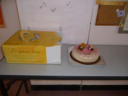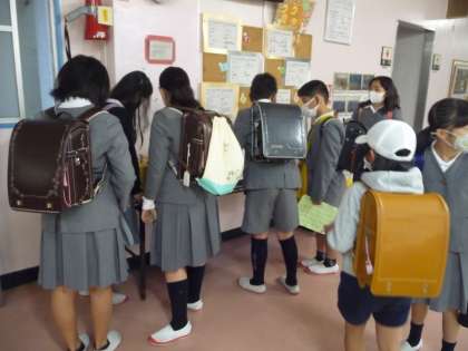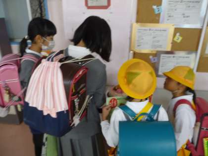 御指導くださったマジパンマイスターからいただいたマジパンを、児童玄関に飾りました。