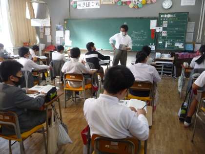 国語の授業です。これから、説明文の読み取りを行うところです。