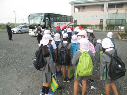 そして、バスに乗って、富士・静岡方面への社会科見学に出発しました。