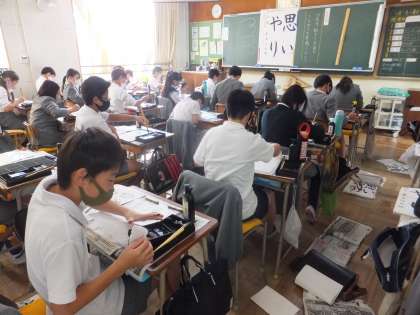 11月4日 授業風景 6−1 公開日 2020/11/04 更新日 2020/11/04 学校生活 6年生は、書写の授業でした。教室に入ると、みんな集中していて、筆を動かす音しか聞こえないほどでした。どの子の作品もとてもいい字になっていました。 いいね(0) 6年生