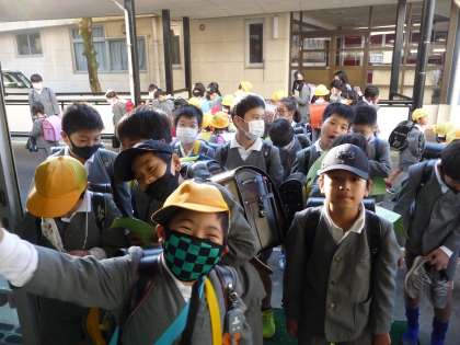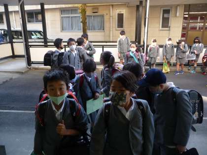 すがすがしい青空の下、子供たちが、今日も元気に登校してきました。