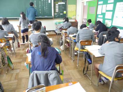 国語の授業です。自分の考えや意見を、根拠を大切にしながら、伝えられるようになるために、考えや意見を表にして整理しています。