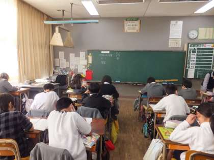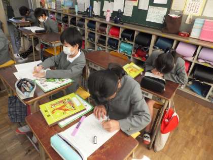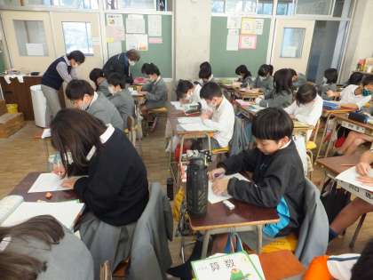 4年生は、支援員さんも一緒に、算数の授業をしていました。けた数の多いかけ算の計算練習をしていました。どの子もじっくりと考えていました。