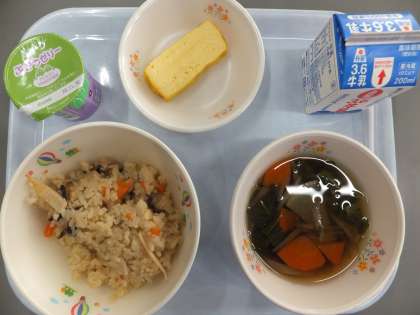 今日の給食【11/13】 公開日 2020/11/13 更新日 2020/11/13 学校生活 今日のメニュー ○とり五目ごはん ○牛乳 ○厚焼き卵 ○芋だんご汁 ○ぶどうゼリー 今日のとり五目ごはんに使用されているお米は、沼津産だそうです。とてもおいしかったです。 いいね(0)