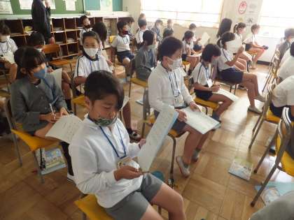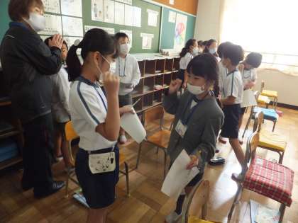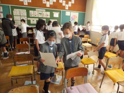 ペアになって、じゃんけんで買った人が、名前のスペルを聞き、プリントにメモをすることができます。どの子も、上手に英語で会話を楽しんでいて感心しました。