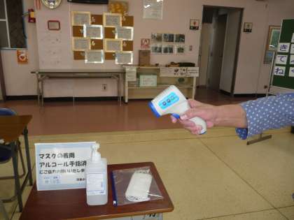 また、校舎に入るときに、体温の測定をお願いしています。