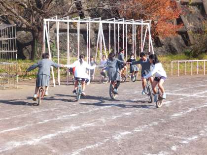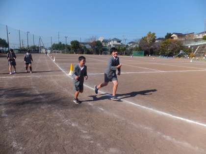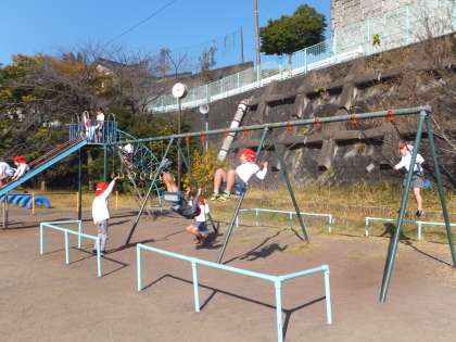 一輪車、遊具で遊ぶ子、鬼ごっこをする子など、それぞれが楽しそうに過ごしています。中には、持久走に挑戦している子もいて感心しました。