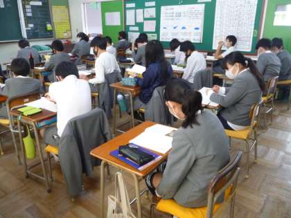 国語の授業です。狂言の学習をしています。