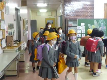 5時間目が終わって、3年生以下の子供たちは下校です。