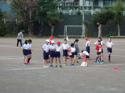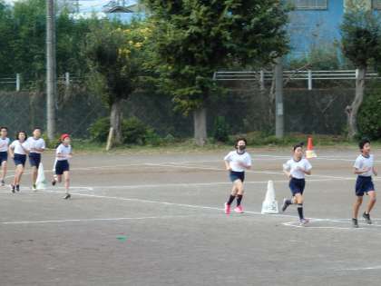 体育の授業です。準備をし終え、持久走に挑戦しています。