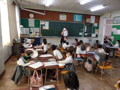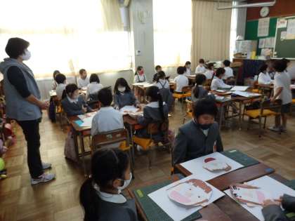 これから行う作業について、先生の説明を聞いています。先生の説明の途中、喜んだり、驚いたりする声が聞こえました。