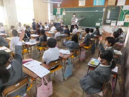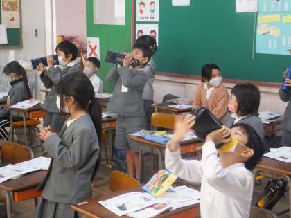 「くるみ割り人形」の曲を聴き、どの子も、トランペットとバイオリンが使われていることに気付いていました。自分の好きな楽器の演奏が始まると立ち上がり、トランペットやバイオリンのエアー演奏をしていました。みんなのりのりでとても楽しそうでした。
