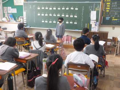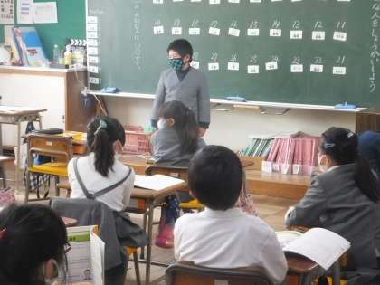 「大切な人をしょうかいしよう」という勉強で、自分の大切な人とその人の特徴を考え、それを一人ずつ発表していました。