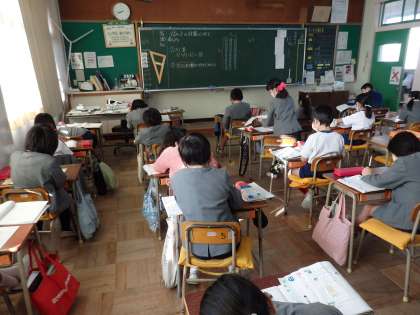算数の授業です。「12×3」の計算を簡単にする方法を考えています。