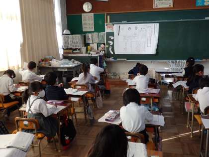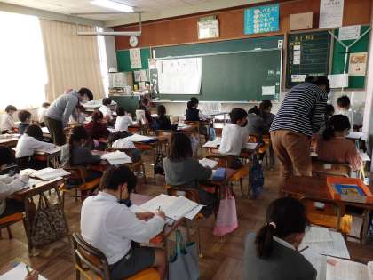国語の授業です。与えられた言葉から受けるイメージを広げて、詩の創作に挑戦しています。