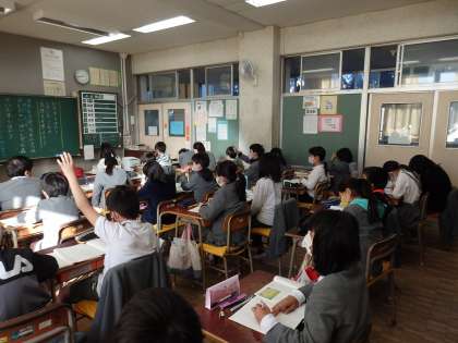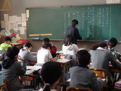 国語の授業です。「ごんぎつね」の読み取りで、村人の気持ちを発表しています。