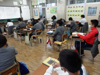 国語の授業です。接続語に注目しながら、論に沿って説明文を読む勉強が始まりました。