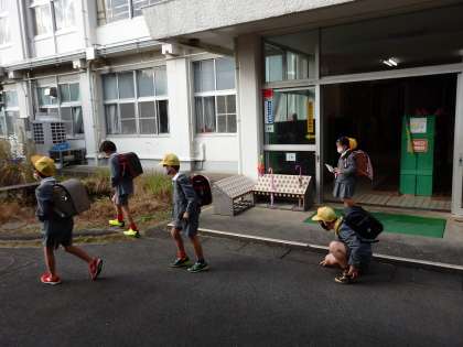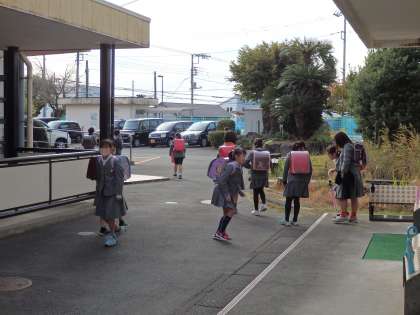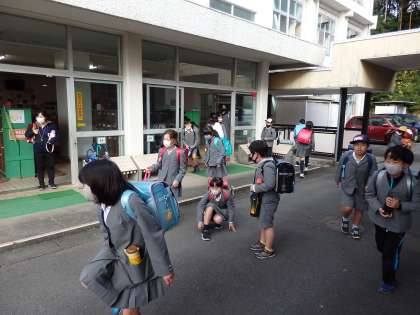 5時間目が終わって、全校で下校です。