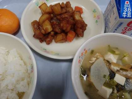 今日の給食 【12/11】 公開日 2020/12/11 更新日 2020/12/11 今日の給食 本日のメニュー ○ ごはん ○ 牛乳 ○ 鶏肉とじゃがいもの揚げ煮 ○ 豆腐と大根のみそ汁 ○ みかん 鶏肉とじゃがいもの揚げ煮は、子供たちが好きなメニューだと覆います。ごはんにも、よく合います。 いいね(0)
